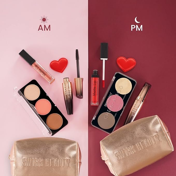 Swiss Beauty Love All Makeup Kit | 2 Waterproof Lipsticks, Volumizing & Curling Mascara, 3-In-1 Face Palette with Bronzer, Highlighter and Blush| Makeup Gift Set